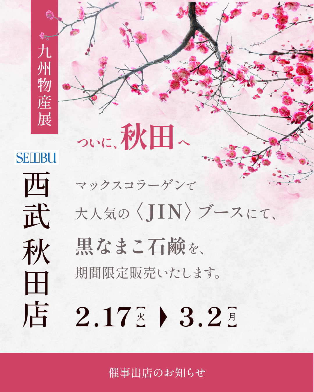ついに、秋田へ! 西武秋田店「九州物産展」長崎〈JIN〉ブースにて 期間限定販売中です。3/2(月)まで